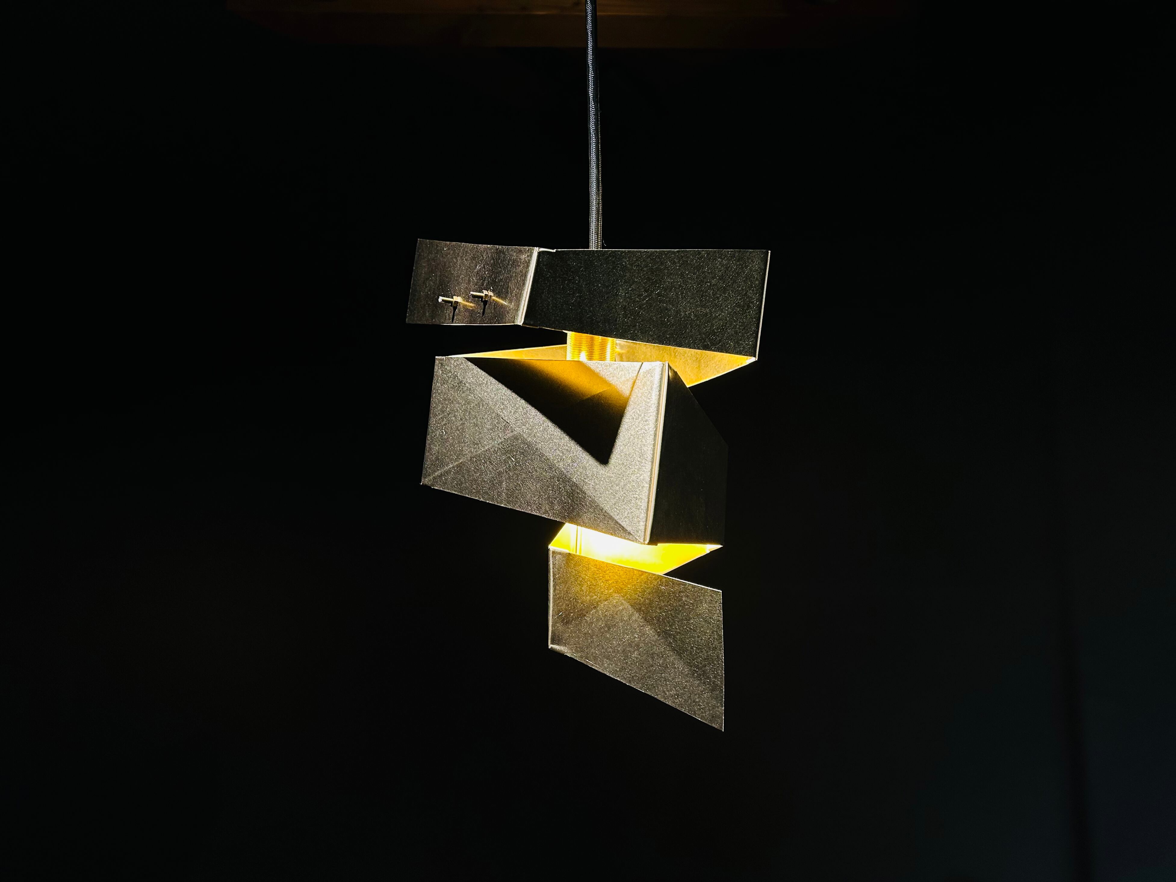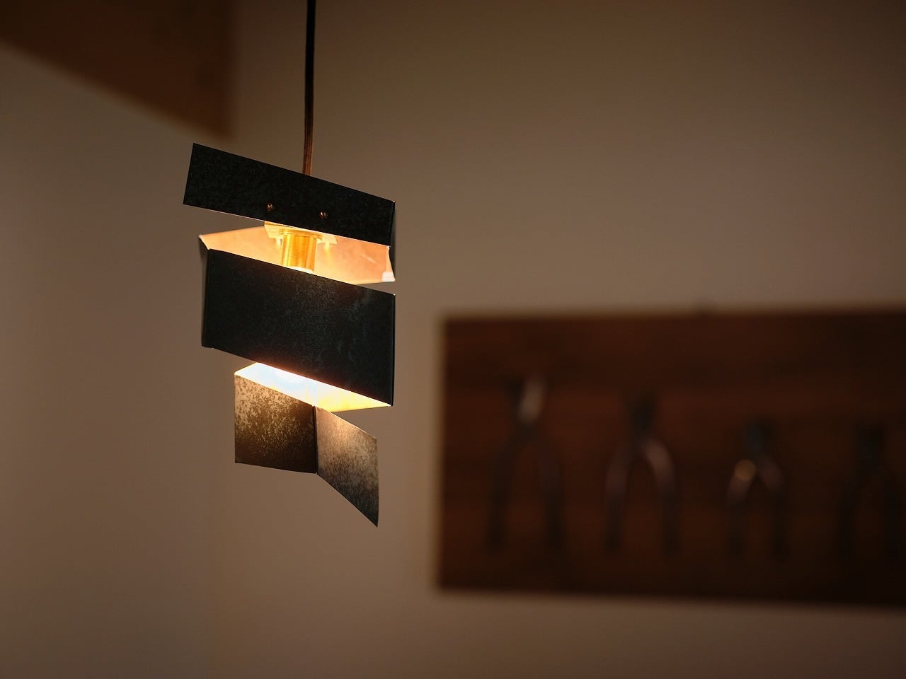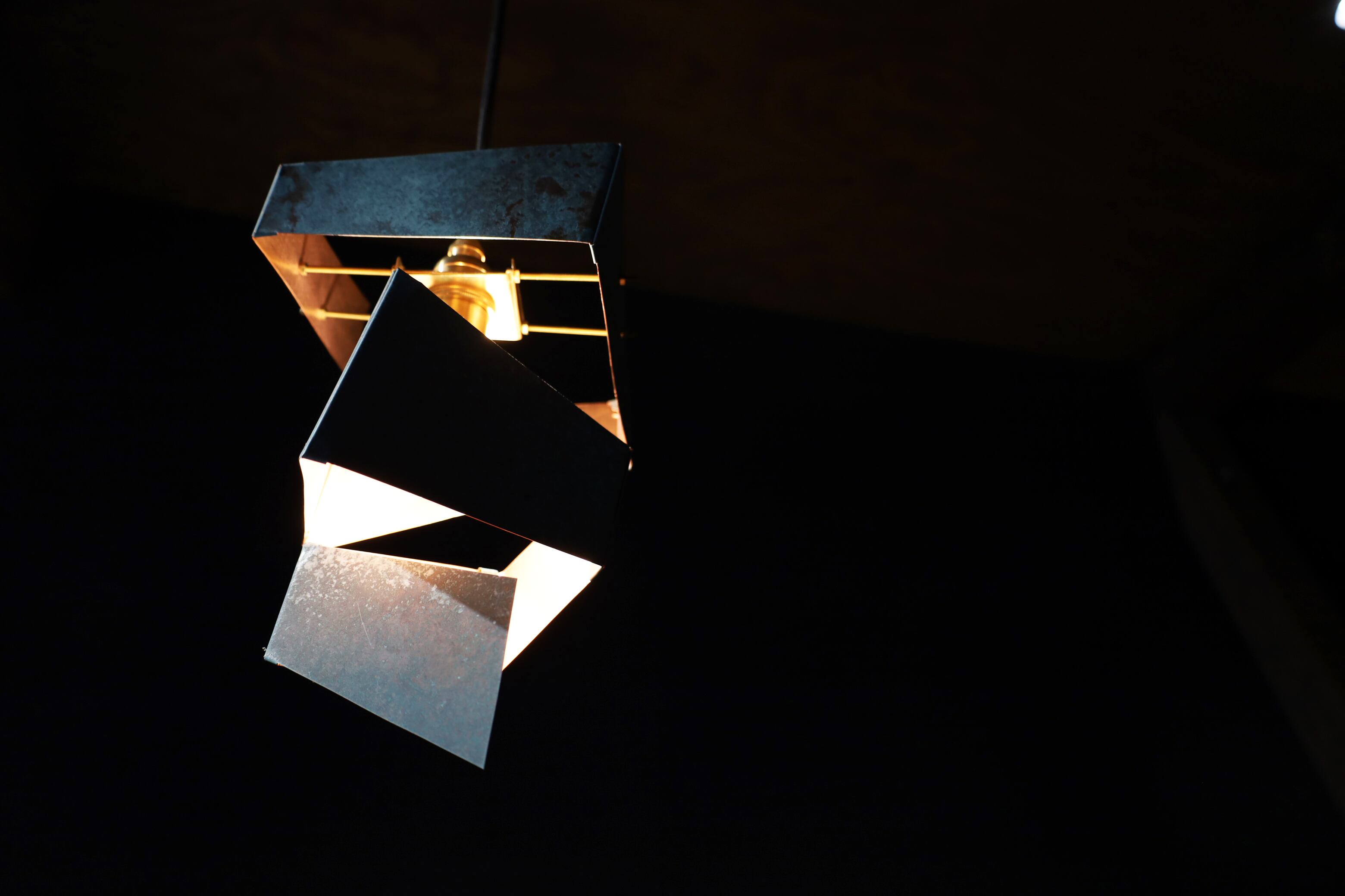 建築家・隈研吾氏がデザインし、ウチノ板金の板金職人が命を吹き込んだペンダントライト「渦」 。伝統技法「ハゼ組」を用いて金属板を螺旋状に繋ぎ、光がひらひらと解けるような独創的なフォルムを実現しました 。職人の手仕事が魅せる光の陰影と、時と共に深まる金属の経年変化を空間に添える品です 。
